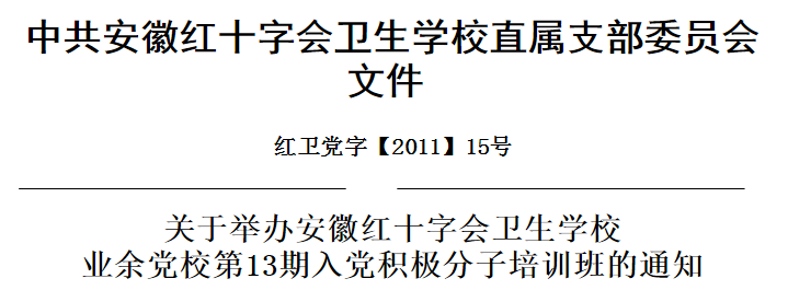 關(guān)于舉辦安徽紅十字會衛(wèi)生學(xué)校業(yè)余黨校第13期入黨積極分子培訓(xùn)班的通知