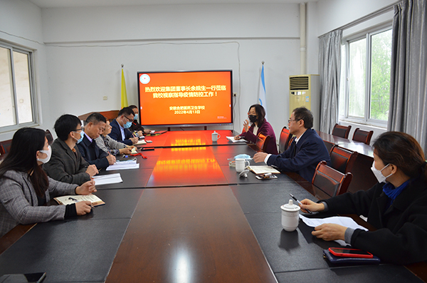 ? ? ? ?4月13日下午,安徽三聯(lián)集團(tuán)董事長(zhǎng)余皖生、安徽三聯(lián)教育集團(tuán)董事長(zhǎng)王珺、學(xué)校監(jiān)事汪瑋一行三人代表安徽合肥醫(yī)藥衛(wèi)生學(xué)校舉辦者安徽三聯(lián)教育集團(tuán)入校督察指導(dǎo)學(xué)校疫情防控工作。學(xué)校黨總支書(shū)記方勁松、校長(zhǎng)洪梅攜相關(guān)職能部門(mén)負(fù)責(zé)人陪同督查。