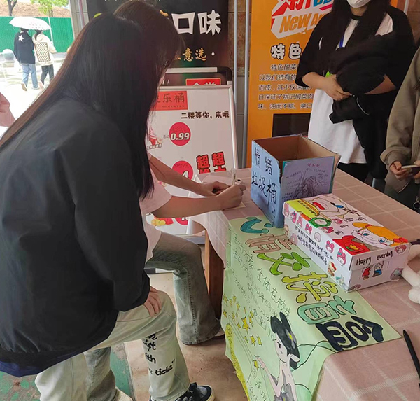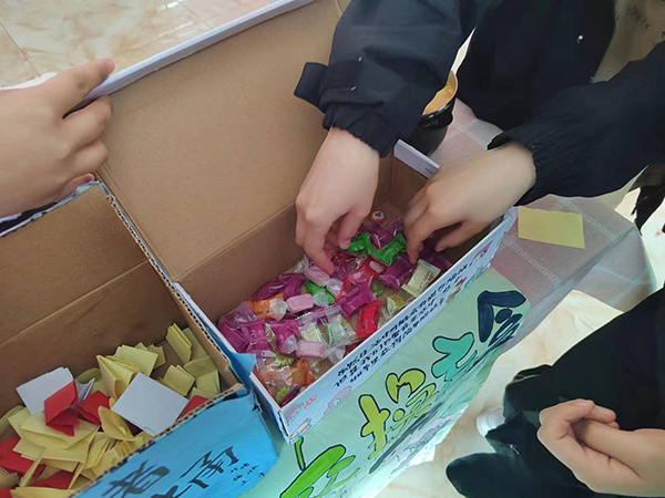 ? ? ? ?同學(xué)們?cè)诨顒?dòng)地點(diǎn)可以領(lǐng)取便簽,寫下自己近期的一些煩惱或者不開(kāi)心的事情,然后將便簽貼投進(jìn)“情緒垃圾桶”。隨后同學(xué)們可以從安慰盲盒中隨機(jī)自取一顆糖果。