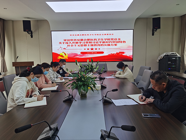 ? ? ? ?5月24日,學(xué)校黨總支副書記徐晶晶主持召開黨總支委員會(huì)會(huì)議,深入學(xué)習(xí)貫徹習(xí)近平總書記在學(xué)習(xí)貫徹習(xí)近平新時(shí)代中國(guó)特色社會(huì)主義思想主題教育工作會(huì)議上的重要講話精神,審議通過《中共安徽合肥醫(yī)藥衛(wèi)生學(xué)??傊Р课瘑T會(huì)關(guān)于深入開展學(xué)習(xí)貫徹習(xí)近平新時(shí)代中國(guó)特色社會(huì)主義思想主題教育的實(shí)施意見》、《中共安徽合肥醫(yī)藥衛(wèi)生學(xué)??傊Р课瘑T會(huì)學(xué)習(xí)貫徹習(xí)近平新時(shí)代中國(guó)特色社會(huì)主義思想主題教育工作方案》,研究部署我校主題教育有關(guān)工作。