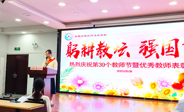 ? ? ? ?躬耕教壇,強(qiáng)國(guó)有我。金秋九月,累累的果實(shí)在枝頭飄香,為深入學(xué)習(xí)貫徹習(xí)近平總書記關(guān)于教育的重要論述,以最高禮遇、最誠(chéng)敬意、最深謝意,表彰先進(jìn)典型,傳遞榜樣力量,弘揚(yáng)良好風(fēng)尚,9月8日下午,安徽合肥醫(yī)藥衛(wèi)生學(xué)校2023年教師節(jié)慶祝表彰大會(huì)在教學(xué)樓一樓多功能廳舉行,校領(lǐng)導(dǎo)秦永元、汪瑋、胡軍健、徐晶晶、王道麟出席大會(huì),全體教職工參加大會(huì),慶祝表彰大會(huì)由教務(wù)處主任沙雯主持。