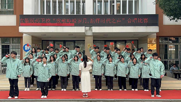 ? ? ? ?小比賽蘊(yùn)藏大能量,唱團(tuán)歌禮贊新時(shí)代。在祖國母親74華誕之際,安徽醫(yī)藥衛(wèi)校的同學(xué)們用歌聲表達(dá)了對(duì)黨對(duì)祖國真摯的祝福、對(duì)夢(mèng)想的追求與渴望,展現(xiàn)了同學(xué)們沐浴黨的陽光、幸福健康成長(zhǎng)的精神風(fēng)貌。這次合唱比賽,帶領(lǐng)同學(xué)們追憶歷史、展望未來,大家紛紛表示要以更加昂揚(yáng)的精神面貌、飽滿的熱情投身到生活與學(xué)習(xí)中去,相信每一個(gè)學(xué)生都有人生出彩的機(jī)會(huì),成為祖國的棟梁之才!