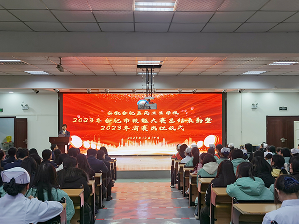 ? ? ? ?為營造崇尚技能、創(chuàng)先爭優(yōu)、勇于拼搏的氛圍,培育工匠精神和勞動精神,讓獲獎學(xué)生有更多的榮譽(yù)感、儀式感和獲得感,提升學(xué)生的備賽和參賽熱情,12月14日,安徽合肥醫(yī)藥衛(wèi)生學(xué)校在教學(xué)樓一樓報告廳舉行學(xué)校2023年合肥市技能大賽總結(jié)表彰會暨2023年省賽出征儀式。校領(lǐng)導(dǎo)汪瑋、胡軍健、徐晶晶、王道麟出席活動,參加大賽的師生、各班學(xué)生代表參加活動,活動由熊永玲主任主持。