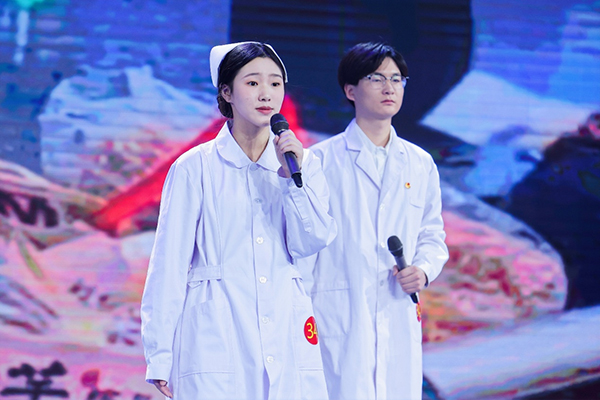 ? ? ? ?決賽的競(jìng)爭(zhēng)異常激烈,現(xiàn)場(chǎng)高潮涌現(xiàn),掌聲不斷,氣氛十分熱烈。安徽醫(yī)藥衛(wèi)校選送的朗誦節(jié)目《讓青春之花綻放在祖國(guó)最需要的地方》,從傳承、精技和報(bào)國(guó)三個(gè)篇章,通過時(shí)空對(duì)話、情景演繹和合誦等方式,繼承和發(fā)揚(yáng)老一輩醫(yī)護(hù)人員無私奉獻(xiàn)、救死扶傷的高尚品質(zhì),弘揚(yáng)“人道、博愛、奉獻(xiàn)”的紅十字精神,鼓勵(lì)廣大青年學(xué)生爭(zhēng)做有理想、敢擔(dān)當(dāng)、能吃苦、肯奮斗的新時(shí)代好青年。