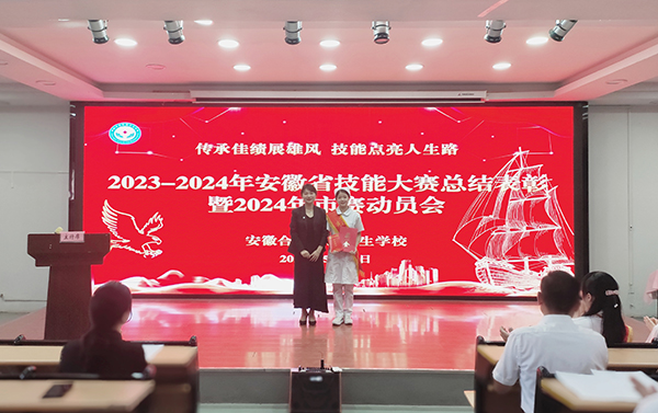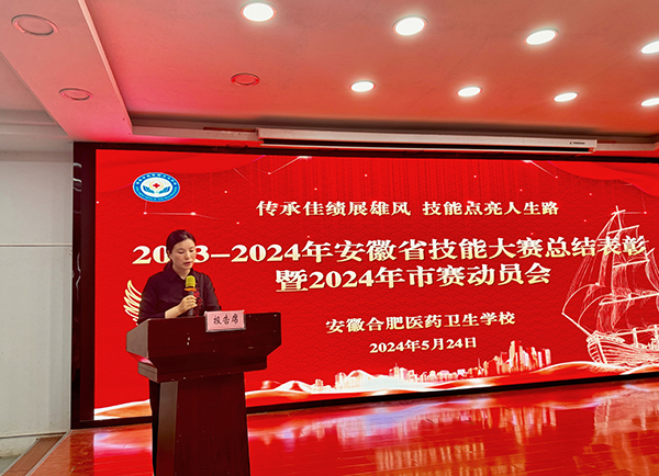 ? ? ? ?技能大賽是引領(lǐng)“三教”改革、提高技術(shù)技能人才培養(yǎng)質(zhì)量、促進(jìn)高質(zhì)量就業(yè)的重要路徑,為表彰學(xué)生在2023年安徽省中職學(xué)校技能大賽中取得的優(yōu)異成績,鼓勵學(xué)生全身心投入到2024年合肥市技能大賽備賽中,安徽合肥醫(yī)藥衛(wèi)生學(xué)校于5月24日下午召開了2023年安徽省技能大賽總結(jié)會,校領(lǐng)導(dǎo)汪瑋、胡軍健、徐晶晶、王道麟出席大會,全體中層管理人員、各部門主管、大賽指導(dǎo)教師、參賽學(xué)生和各班級學(xué)生代表參加大會。