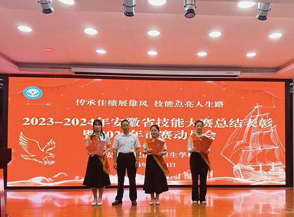 ? ? ? ?活動在莊嚴(yán)的國歌聲中拉開帷幕,會議宣讀了《安徽合肥醫(yī)藥衛(wèi)生學(xué)校關(guān)于表彰2023年全省中職學(xué)校技能大賽獲獎學(xué)生和指導(dǎo)教師的決定》文件。校領(lǐng)導(dǎo)分別為2023年省賽獲獎學(xué)生、指導(dǎo)教師頒獎。2023年省賽優(yōu)秀指導(dǎo)教師代表、省賽獲獎學(xué)生代表,2024年市賽指導(dǎo)教師代表,2024年市賽參賽學(xué)生代表,依次做了交流發(fā)言。