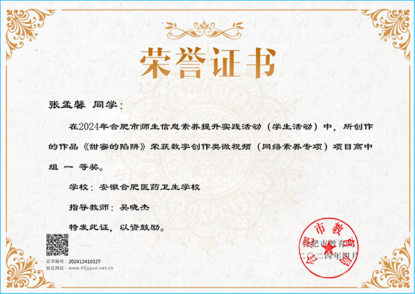 ? ? ? ?近日,安徽合肥醫(yī)藥衛(wèi)生學(xué)校選送的微視頻(網(wǎng)絡(luò)素養(yǎng)專項(xiàng))作品《“甜蜜”的陷阱》《一念之間》分別榮獲第二十二屆安徽省學(xué)生信息素養(yǎng)提升實(shí)踐活動(dòng)(學(xué)生組)數(shù)字創(chuàng)作類一等獎(jiǎng)、二等獎(jiǎng),其中《一念之間》將代表安徽省參加全國(guó)師生信息素養(yǎng)提升實(shí)踐活動(dòng)(第二十五屆學(xué)生活動(dòng)),并進(jìn)行現(xiàn)場(chǎng)交流展示。