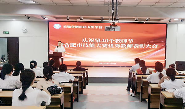 ? ? ? ?三尺講臺獻芳華,四季耕耘育桃李。在第40個教師節(jié)到來之際,為大力弘揚教育家精神,營造全校尊師重教的濃厚氛圍,激勵學(xué)校廣大教師和教育工作者落實立德樹人根本任務(wù),9月10日中午,安徽合肥醫(yī)藥衛(wèi)生學(xué)校在教學(xué)樓多功能廳舉行慶祝教師節(jié)暨市技能大賽優(yōu)秀指導(dǎo)教師表彰大會,學(xué)校董事長秦永元、校長汪瑋、黨總支副書記徐晶晶、副校長王道麟出席大會,全體教職工參加大會。大會由常務(wù)副校長胡軍健主持。