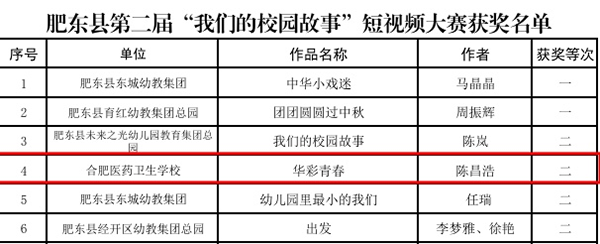 近日,肥東縣第二屆“我們的校園故事”短視頻大賽圓滿落幕,安徽合肥醫(yī)藥衛(wèi)生學(xué)校陳昌浩同學(xué)憑借作品《華彩青春》榮獲二等獎,為學(xué)校爭得了榮譽。
