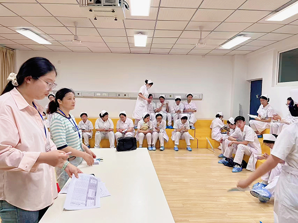 考核當(dāng)日,考生分批次完成理論與實(shí)操測(cè)試。教學(xué)樓階梯教室內(nèi),考生凝神作答,將課堂所學(xué)轉(zhuǎn)化為答卷上的專(zhuān)業(yè)積淀;實(shí)操考場(chǎng)外,候考學(xué)子專(zhuān)注演練操作流程,在志愿者引導(dǎo)下有序入場(chǎng)。在緊張而有序的氛圍中,衛(wèi)校學(xué)子以嚴(yán)謹(jǐn)?shù)膽B(tài)度和嫻熟的技能,詮釋了對(duì)老年照護(hù)職業(yè)的敬畏與熱忱。
