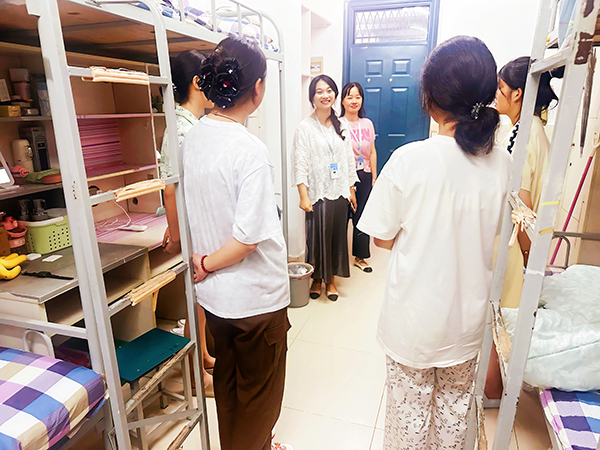 報(bào)到日晚上,校領(lǐng)導(dǎo)帶隊(duì)分組走進(jìn)新生宿舍區(qū)開展慰問(wèn)工作,確保新生宿舍走訪無(wú)遺漏、全覆蓋。每支隊(duì)伍都由校領(lǐng)導(dǎo)牽頭,相關(guān)職能部門負(fù)責(zé)人、班主任代表共同參與,形成了上下聯(lián)動(dòng)的關(guān)懷網(wǎng)絡(luò)。