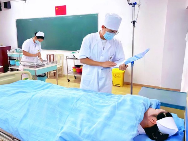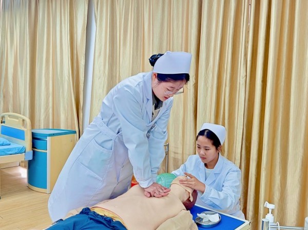 護(hù)理技能實(shí)訓(xùn)室內(nèi),氣氛專注而緊張。隊(duì)員們兩兩配合,開展靜脈輸液、心肺復(fù)蘇等關(guān)鍵操作。從無菌盤打開到靜脈穿刺,每一個步驟都力求精準(zhǔn),每一次配合都彰顯默契,在反復(fù)打磨中錘煉專業(yè)能力。