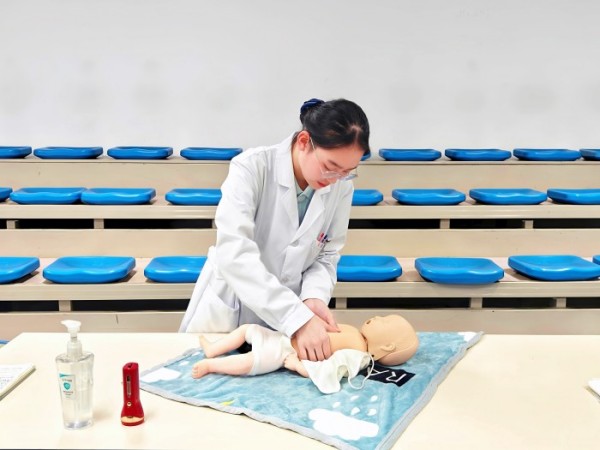 嬰幼兒保育區(qū)域內(nèi),隊(duì)員們正緊急處理模擬嬰兒突發(fā)心跳驟停的狀況。她們迅速判斷意識、檢查呼吸,隨即開始規(guī)范胸外按壓,動作標(biāo)準(zhǔn)而輕柔。同時,熟練清理呼吸道、進(jìn)行人工呼吸,并不斷以溫柔語言安撫,展現(xiàn)出扎實(shí)的心肺復(fù)蘇技能與人文關(guān)懷素養(yǎng)。