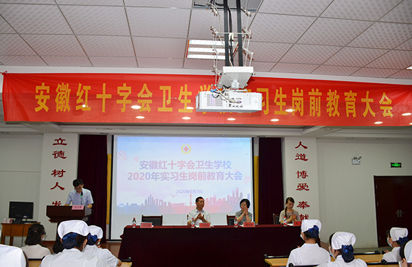 ? ? ? ?6月3日上午,紅會(huì)衛(wèi)校在教學(xué)樓一樓多功能廳召開2020年實(shí)習(xí)生崗前教育大會(huì)。合肥市第一人民醫(yī)院西區(qū)護(hù)理部主任魏道林應(yīng)邀蒞臨大會(huì)進(jìn)行指導(dǎo),校領(lǐng)導(dǎo)方勁松、洪梅、胡軍健出席本次教育大會(huì)。同學(xué)們專心聆聽諄諄教誨,為實(shí)習(xí)做好準(zhǔn)備。