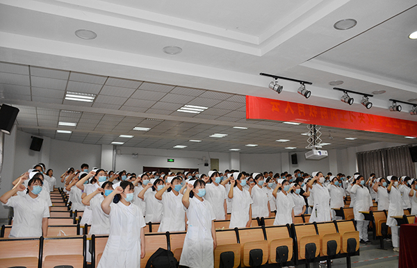 ? ? ? ? ?崗前教育大會(huì)在莊嚴(yán)的國(guó)歌聲中拉開序幕,首先,即將奔赴實(shí)習(xí)崗位的饒新怡同學(xué)代表全體實(shí)習(xí)生進(jìn)行發(fā)言,表示將嚴(yán)格遵守規(guī)章制度,加強(qiáng)專業(yè)知識(shí)學(xué)習(xí),增強(qiáng)臨床實(shí)踐能力,爭(zhēng)取出色完成實(shí)習(xí)任務(wù)。隨后,饒新怡同學(xué)帶領(lǐng)全體同學(xué)進(jìn)行崗前宣誓。羅世杰同學(xué)作為學(xué)校2019屆優(yōu)秀實(shí)習(xí)生代表,以自己的實(shí)習(xí)經(jīng)歷為線索,和即將奔赴實(shí)習(xí)崗位的同學(xué)進(jìn)行經(jīng)驗(yàn)交流,將自己的實(shí)習(xí)心得體會(huì)和學(xué)弟學(xué)妹進(jìn)行分享。