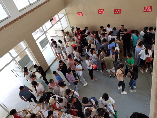 ? ? ? ?新生一走進校園,接待處、咨詢點、綠色通道指引等各種與入學(xué)報到有關(guān)的標(biāo)識一目了然。校園內(nèi),各專業(yè)報到點人潮涌動,歡聲彌漫,熱鬧非凡,新生報到工作緊張有序地進行。校領(lǐng)導(dǎo)不時深入報到現(xiàn)場,了解新生報到情況,與新生及家長親切交談,噓寒問暖。各職能部門工作人員、各駐點老師均在接待點第一時間為新生提供優(yōu)質(zhì)服務(wù),幫助學(xué)生辦理入學(xué)登記注冊手續(xù),為學(xué)生和家長解答相關(guān)疑問。