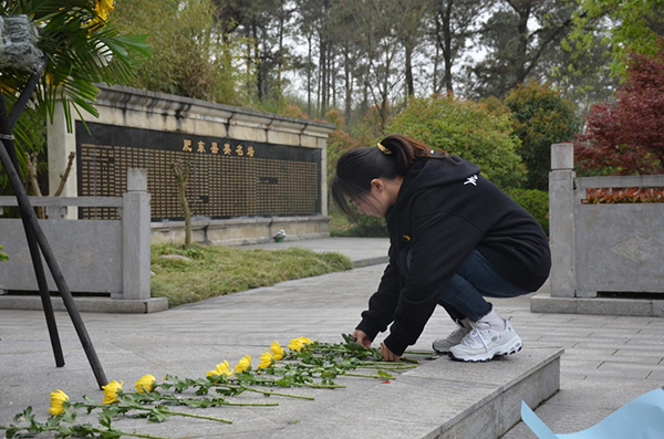 ?????? 在莊嚴(yán)的紀(jì)念碑下,全體團(tuán)員一起奏唱國(guó)歌和團(tuán)歌、重溫入團(tuán)誓詞、默哀,并向革命烈士獻(xiàn)花。同學(xué)們列隊(duì)整齊,默哀鞠躬致敬,接受心靈的洗滌,告慰烈士忠魂,寄托對(duì)烈士的無(wú)限哀思。祭掃活動(dòng)結(jié)束后,同學(xué)們參觀了烈士陵園等,整場(chǎng)活動(dòng)過(guò)程莊嚴(yán)肅穆。