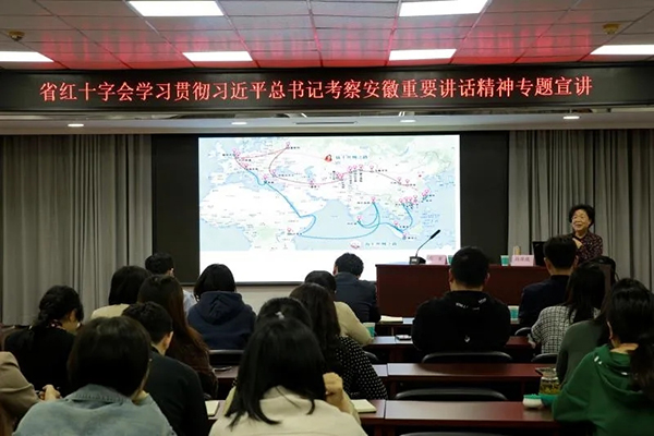 ?????? 10月19日下午在省紅十字會基金會會議室舉辦貫徹習(xí)近平總書記考察安徽重要講話精神專題講座,省委黨校高淮成教授就學(xué)習(xí)貫徹習(xí)近平總書記考察安徽重要講話精神作專題宣講。省紅十字會黨組書記、常務(wù)副會長張青主持宣講會,我校黨員代表聆聽了報(bào)告。