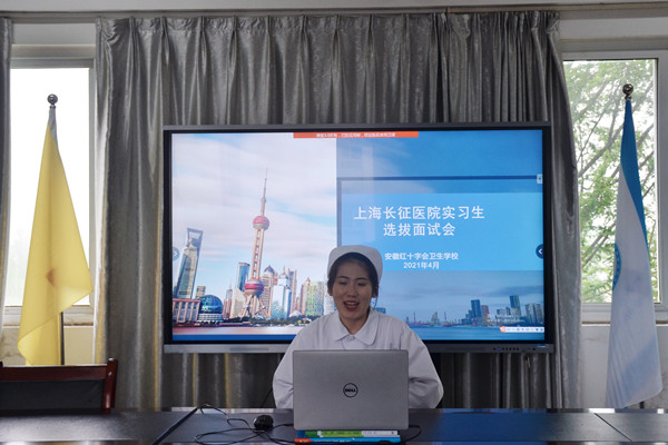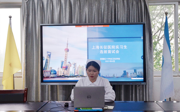 ? ? ? ?4月14日,大型三甲綜合醫(yī)院海軍軍醫(yī)大學(xué)第二附屬醫(yī)院(上海長征醫(yī)院)通過遠(yuǎn)程視頻形式面試選拔紅會衛(wèi)校優(yōu)秀實習(xí)生。