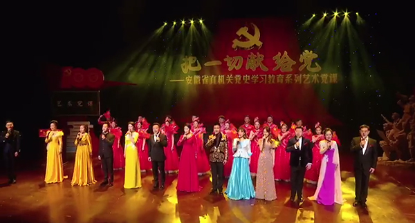 ?????? ?藝術(shù)黨課以深入學(xué)習(xí)貫徹習(xí)近平總書(shū)記關(guān)于黨史的重要論述為主題,通過(guò)《國(guó)際歌》、《紅船》、《保衛(wèi)黃河》、《春天的故事》、《追尋》、《小康路上》、《百年征程》、《把一切獻(xiàn)給黨》等作品以豐富多彩的表現(xiàn)形式,具有時(shí)代發(fā)展意義的節(jié)目?jī)?nèi)容,藝術(shù)化地展現(xiàn)了一代代中國(guó)共產(chǎn)黨人無(wú)畏犧牲、接續(xù)奮斗的革命精神,為現(xiàn)場(chǎng)觀眾帶來(lái)了一場(chǎng)震撼心靈的視聽(tīng)盛宴,現(xiàn)場(chǎng)氣氛熱烈。