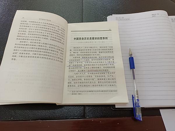 ?????? 本次黨史學(xué)習(xí)教育讀書班以“學(xué)史明理、學(xué)史增信、學(xué)史崇德、學(xué)史力行”為培訓(xùn)目標(biāo),重點(diǎn)圍繞習(xí)近平總書記在黨史學(xué)習(xí)教育開展以來的系列重要講話精神和《論中國(guó)共產(chǎn)黨》、《毛澤東、鄧小平、江澤民、胡錦濤關(guān)于中國(guó)共產(chǎn)黨歷史論述摘編》、《習(xí)近平新時(shí)代中國(guó)特色社會(huì)主義思想學(xué)習(xí)問答》、《中國(guó)共產(chǎn)黨簡(jiǎn)史》等指定學(xué)習(xí)材料和更多參考材料,采用集中自學(xué)、集體研學(xué)等形式,制定學(xué)習(xí)計(jì)劃,力求在學(xué)深悟透、身體力行上有所啟發(fā)和收獲。
