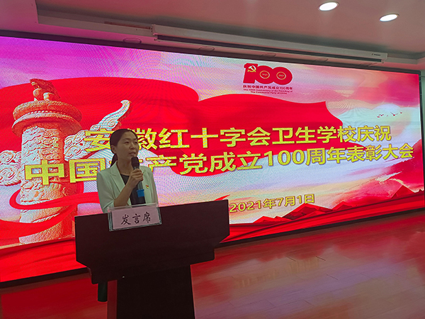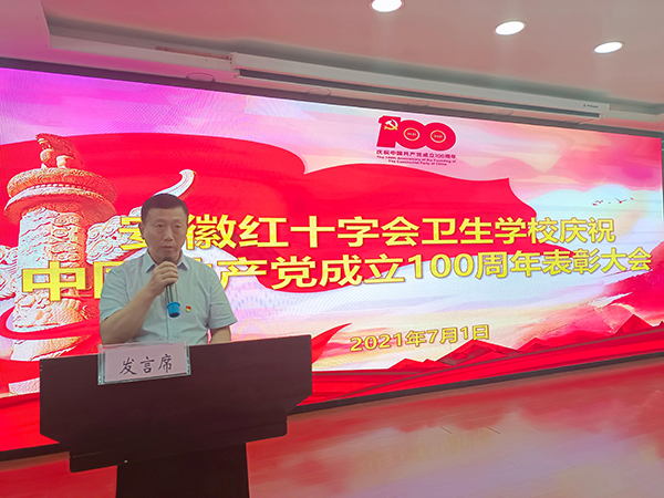 ?????? 7月1日下午,安徽紅十字會(huì)衛(wèi)生學(xué)校召開慶祝中國共產(chǎn)黨成立100周年表彰大會(huì),校黨總支書記方勁松、校長(zhǎng)洪梅、副校長(zhǎng)胡軍健出席大會(huì)。校黨總支班子成員、各黨支部書記及全校教職工參加大會(huì)。大會(huì)由校長(zhǎng)助理徐晶晶主持。
