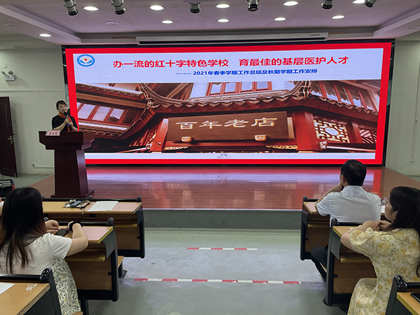 ?????? 7月1日,紅會(huì)衛(wèi)校在教學(xué)樓多功能廳召開2021年度上半年工作總結(jié)暨招生動(dòng)員大會(huì),校黨總支書記方勁松,校長(zhǎng)洪梅,校長(zhǎng)助理徐晶晶出席會(huì)議,全體教職工參加會(huì)議,會(huì)議由副校長(zhǎng)胡軍健主持。