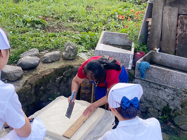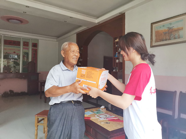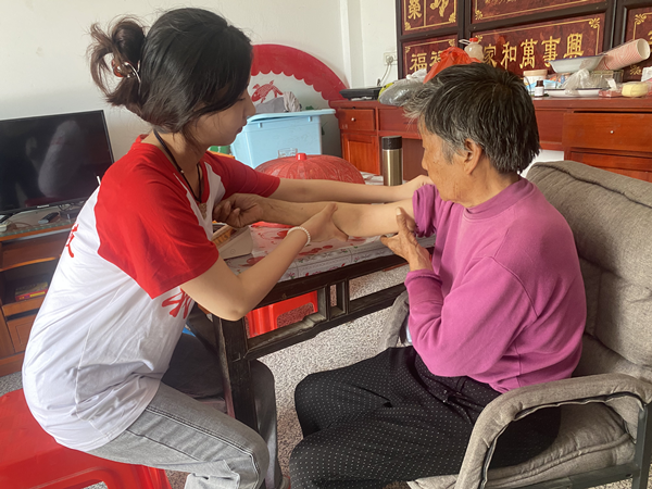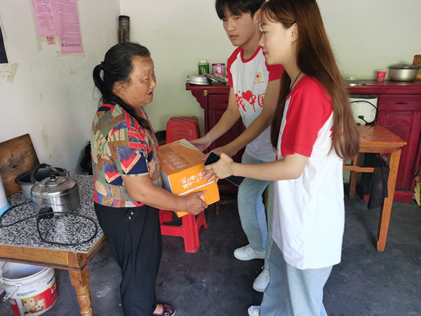 ? ? ? ?時值晌午,伏天里的太陽炙烤著水泥馬路,四面圍山的千坪村沒有一絲涼風(fēng)。在孤寡老人家中,隊員們與老人聊天談心,幫助他們測量血壓,為他們送去慰問品?!懊佬∽o(hù)”握著孤寡老人的手,與他們面對面對面,心貼心,了解他們的身體情況和心理情況,幫他們做家務(wù),干農(nóng)活,并結(jié)合自身所學(xué)的專業(yè)知識,普及健康常識,叮囑老人注意飲食起居,提供美小護(hù)們力所能及的幫助。老人們因“美小護(hù)”的到來感到溫暖與快樂。