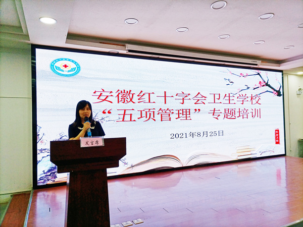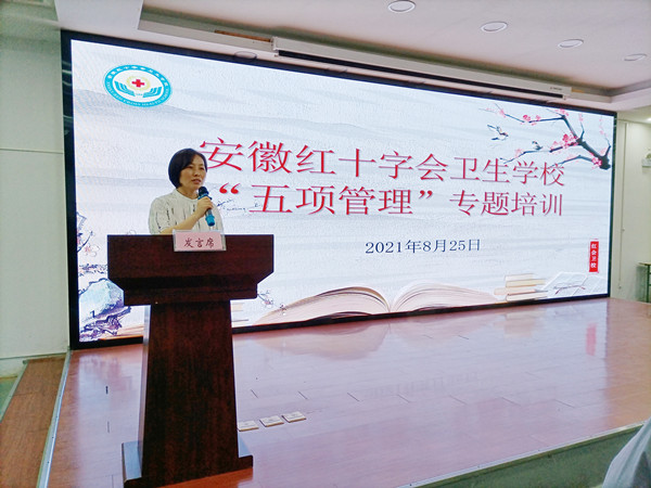 ? ? ? ?為進一步規(guī)范辦學(xué)行為,促進學(xué)生健康成長,全面加強對學(xué)生的“手機、課外讀物、睡眠、作業(yè)、體質(zhì)”五方面的健康管理,幫助學(xué)校全體教師認識“五項管理”的核心要義,8月25日,紅會衛(wèi)校組織開展“五項管理”專題培訓(xùn)會,學(xué)校全體專兼職教師、班主任參加培訓(xùn)會議。