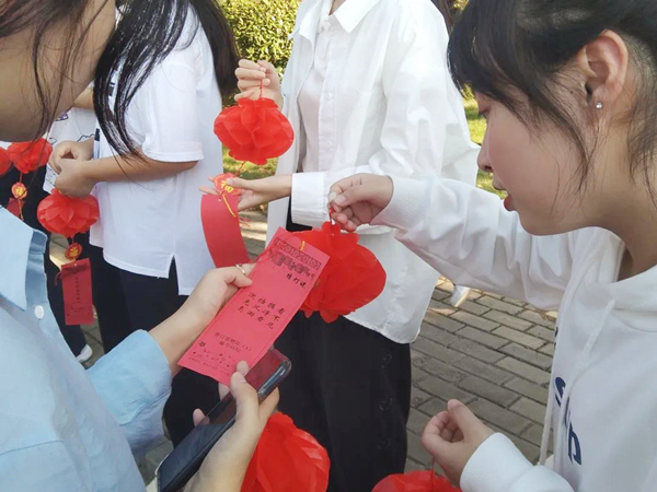 ? ? ? ?因疫情防控需要,學(xué)生中秋假期都留校過節(jié)。中秋節(jié)當(dāng)天,學(xué)校廣播站播放關(guān)于中秋節(jié)的歌曲和民謠,此外廣播站還面向全體同學(xué)征集他們對(duì)家人、朋友的祝福,并通過校園廣播播放。中秋節(jié)傍晚時(shí)分,學(xué)校在黨史教育文化長(zhǎng)廊兩側(cè)懸掛中秋燈籠及燈謎,部分學(xué)生著漢服,梳著古典發(fā)型,自提燈籠前往巡游,并參加猜燈謎活動(dòng),體驗(yàn)節(jié)日的快樂。
