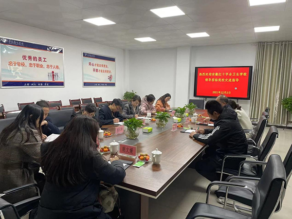?????? 為提升我校學生管理工作水平,促進學校更好地服務學生成長成才,12月2日,校長洪梅、副校長胡軍健帶領(lǐng)相關(guān)處室負責人前往合肥騰飛學校開展工作交流學習,騰飛學校校長黃書榮、團委書記賈文意、學生處主任占丁華熱情接待了我校學習組一行。
