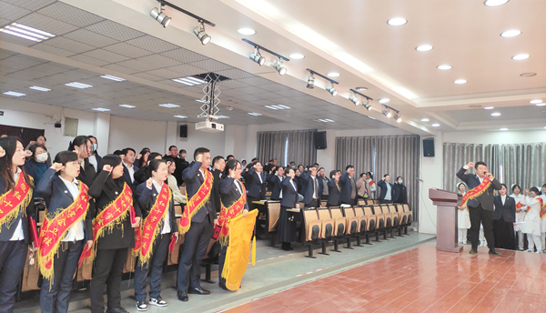 ? ? ? ?會上,全體教職工在招生辦公室萬世超老師的帶領(lǐng)下進(jìn)行宣誓,通過一句句傲爭鐵骨的誓詞,表達(dá)出全體紅衛(wèi)人2022年招生工作的必勝信心與決心。
