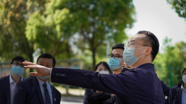 ? ? ? ?王偉程一行在校門外測(cè)溫、亮碼、登記,了解學(xué)校門崗管控情況,隨后實(shí)地察看了校園環(huán)境,在察看過(guò)程中詳細(xì)詢問(wèn)了學(xué)校疫情防控相關(guān)措施,學(xué)校校長(zhǎng)洪梅從校園封閉管理、師生員工行程管控、應(yīng)急情況處置、核酸檢測(cè)、防疫物資儲(chǔ)備、校園安全等方面進(jìn)行匯報(bào)。