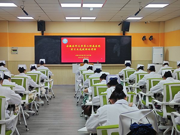而安徽醫(yī)科大學(xué)第二附屬醫(yī)院的實(shí)習(xí)生選拔方式不同于以往,本次采用線上答題的方式,同學(xué)們手持手機(jī),他們有的眉頭微皺,有的眼神堅(jiān)定,考場(chǎng)里,安靜得只能聽見手機(jī)屏幕點(diǎn)擊的輕微聲響,那是同學(xué)們?cè)谥R(shí)的海洋中奮力劃槳的聲音,是他們?yōu)閴?mèng)想拼搏的心跳聲。